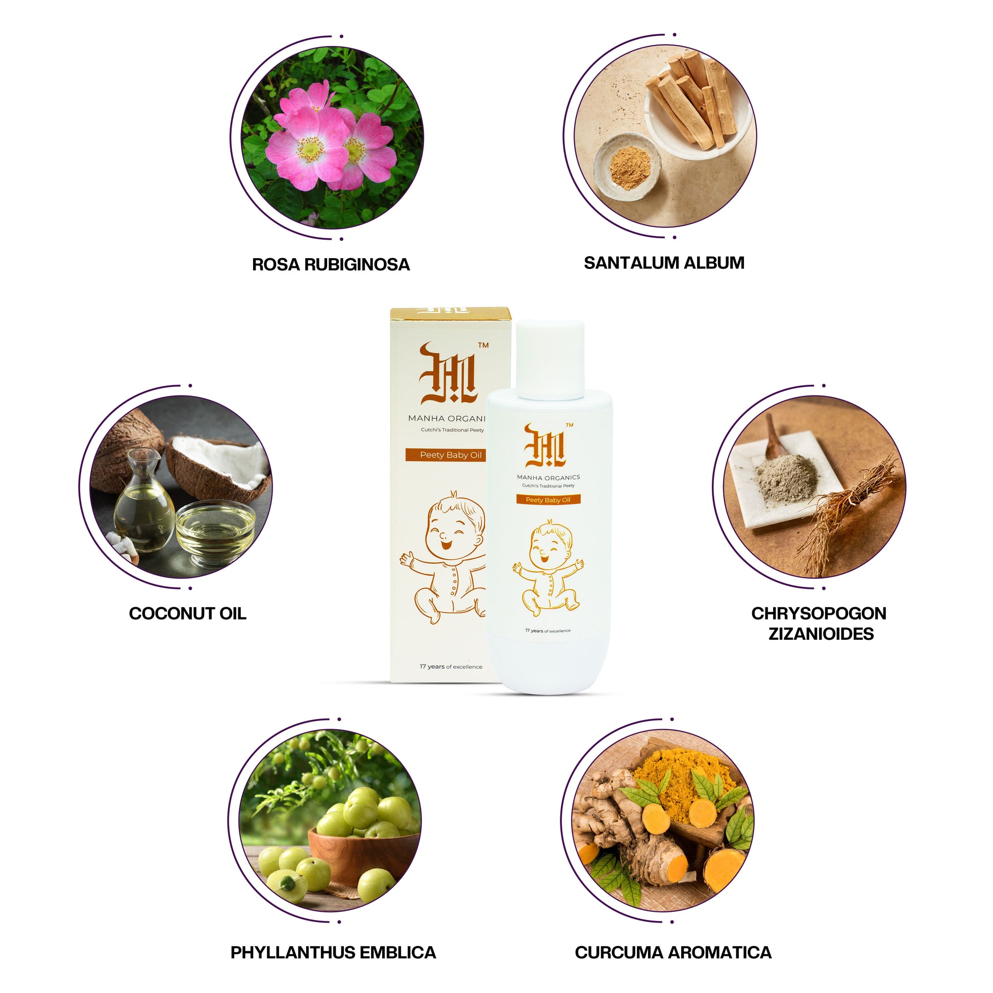 PEETY BABY OILMANHA ORGANICS "Cutchi's Traditional Peety" Peety Baby Oil, 200ml | 100% Organic and Natural | Gently Care for Baby's Skin | Gentle, Soothing Skin Care